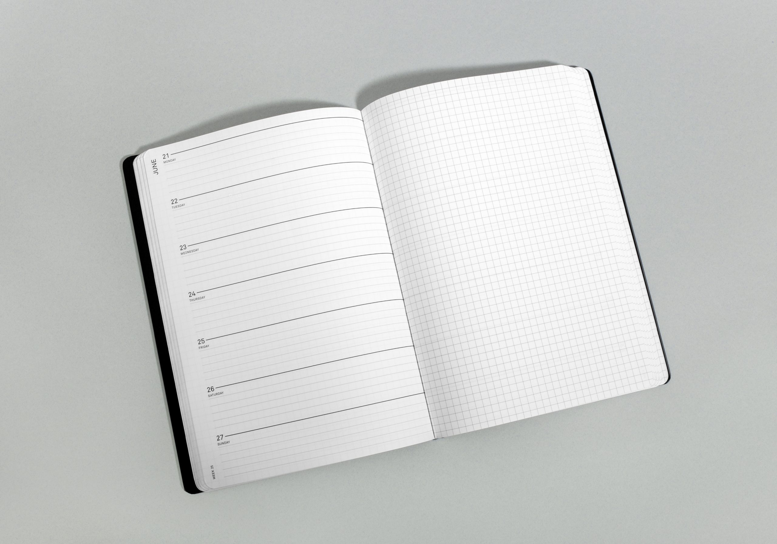 – 52 spreads weekly planner + squared note page
