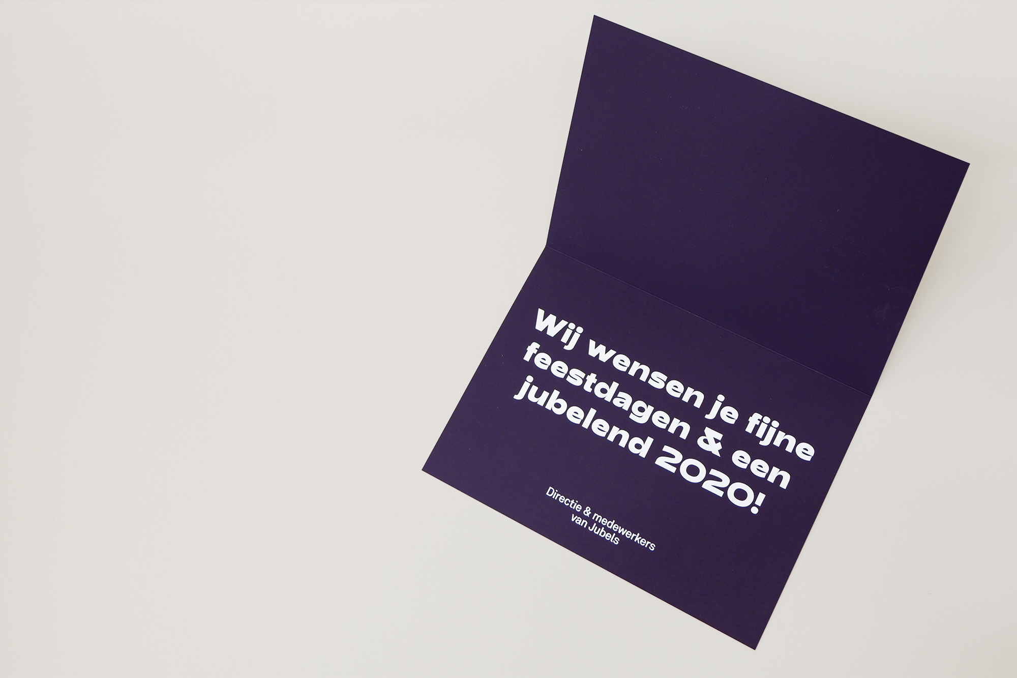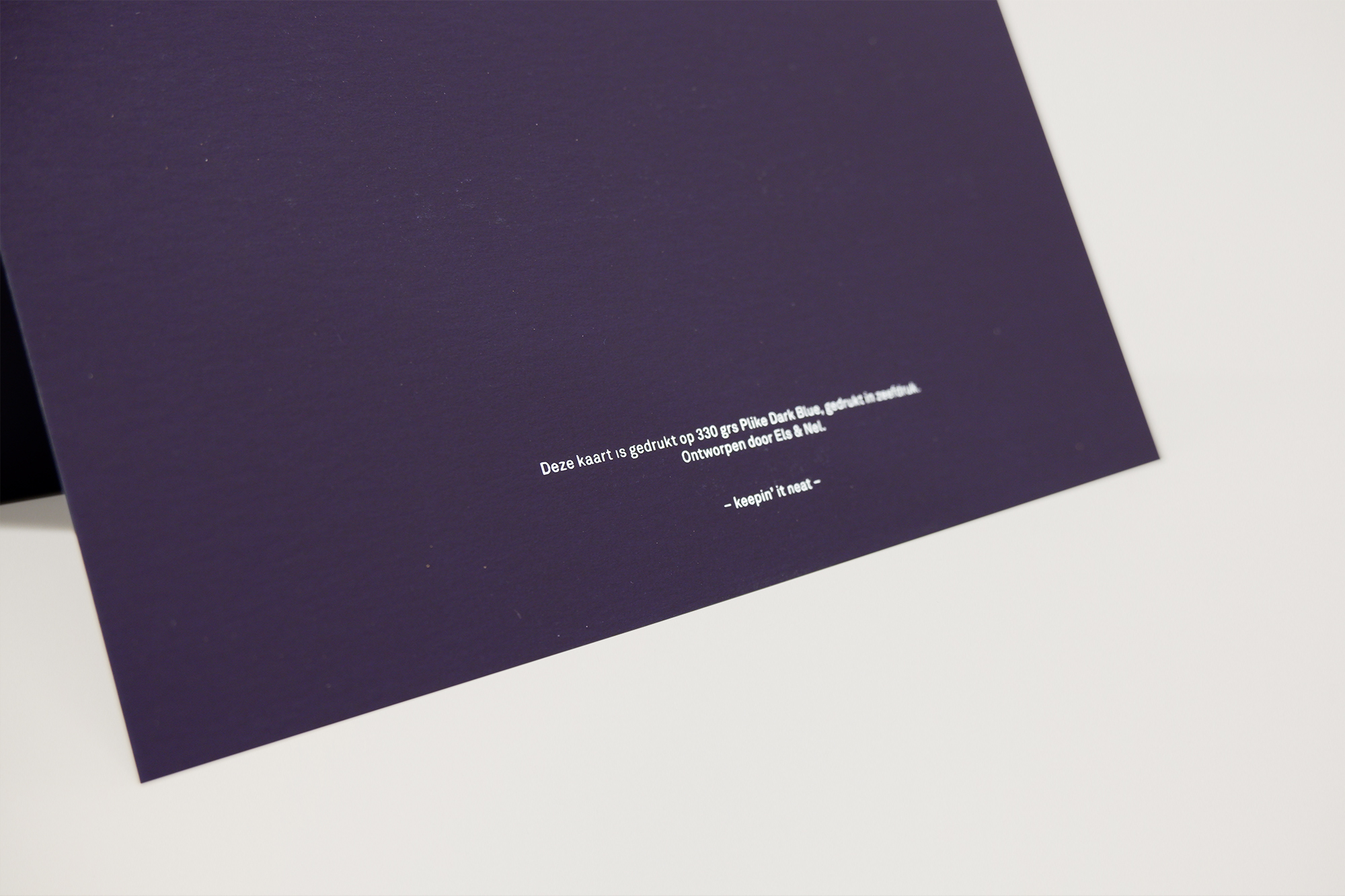 Els & Nel was asked to design the yearly Holiday card for Jubels, their partner in crime for the production of Els & Nel’s products since 2013. For the design Els & Nel choose a simple but bold letter that would high light the soft almost rubbery touch of the Plike Dark Blue paper and combined it with the always efficacious printing technique of silkscreen printing.